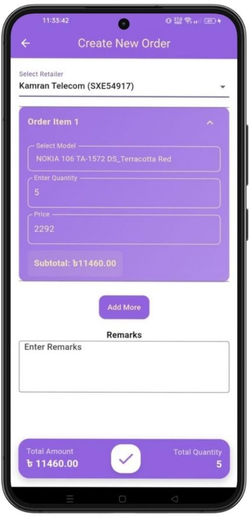 Yes. Our system comes with a dedicated mobile application for dealers, retailers, and sales teams. It allows users to place orders, track stock, record sales, and manage returns anytime, anywhere — ensuring faster operations and real-time updates on the go.